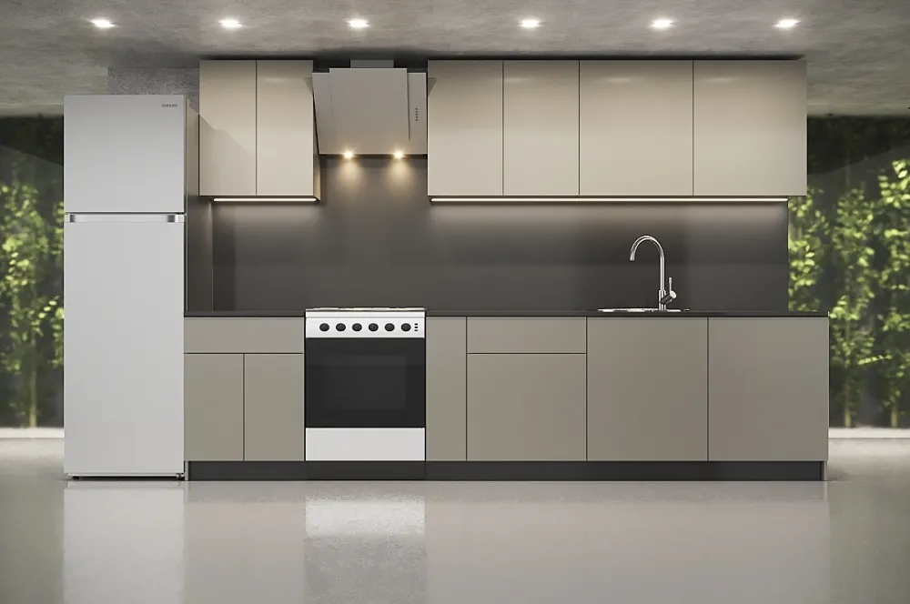 Ручки, столешница, стеновая панель, мойка, смеситель и бытовая техника продаются отдельно.
